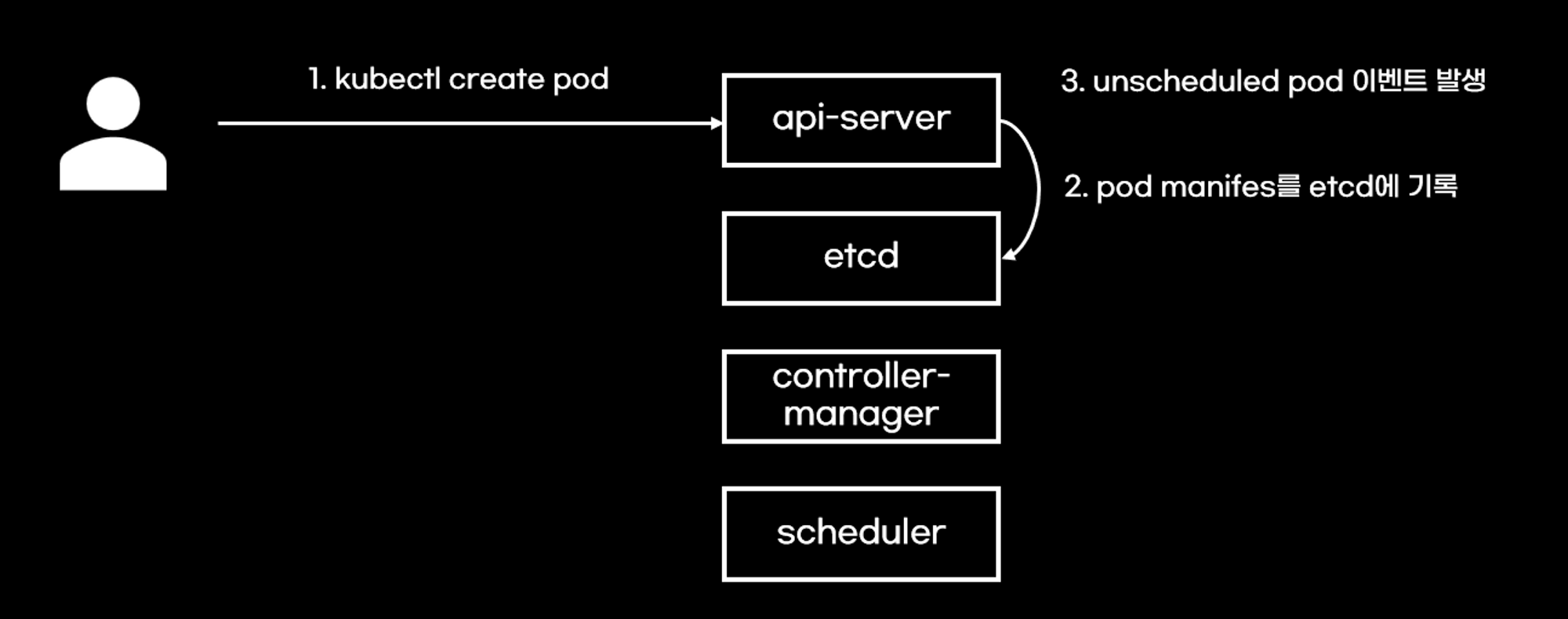 이 글을 이해하기 위해 쿠버네티스 component들이 무엇이 있는지 알아야 합니다. pod를 생성하기 위해 많은 쿠버네티스 component들이 생성과정에 참여하기 때문입니다.