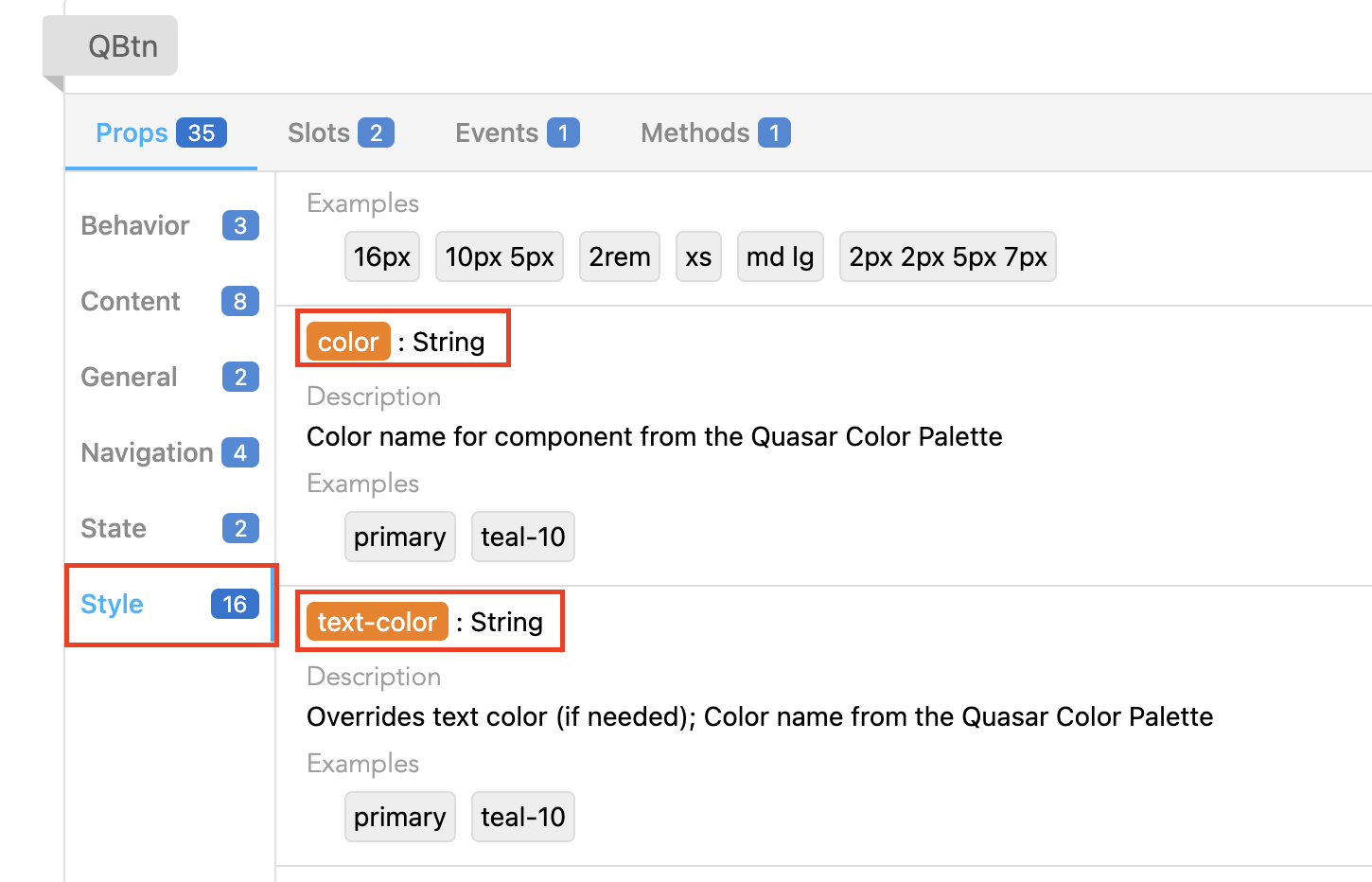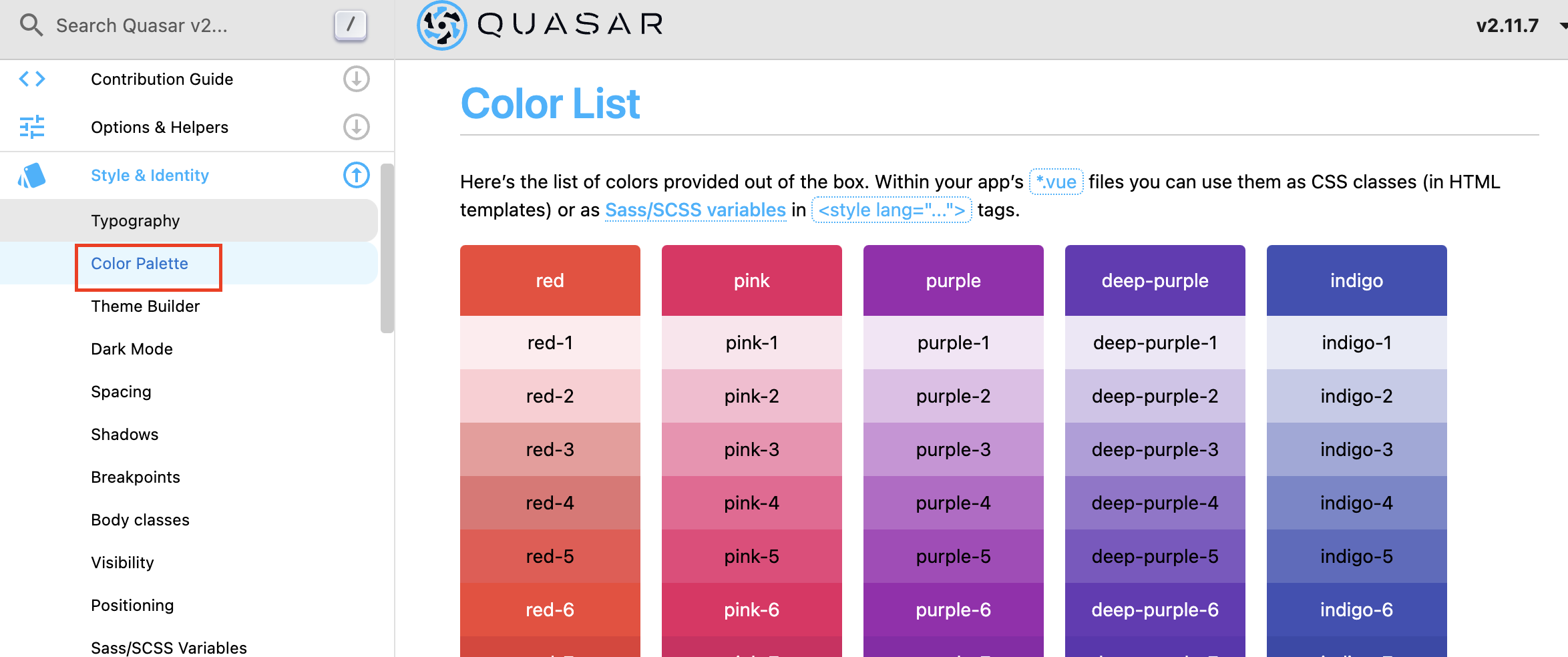 quasar는 색깔을 class로 사용할 수 있도록 미리 정의했습니다.