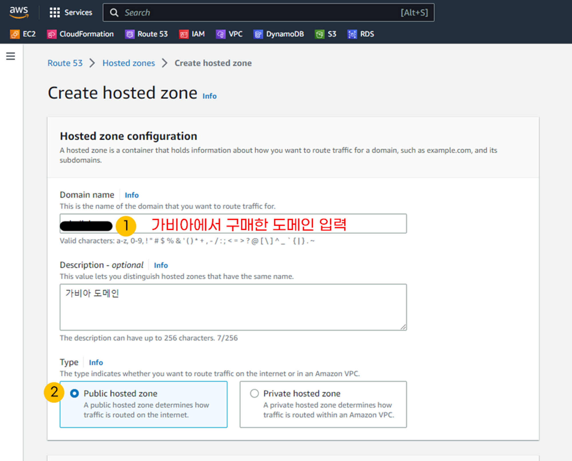 이 글은 가비아에서 구매한 도메인을 aws route53에 연동 방법을 설명합니다.
