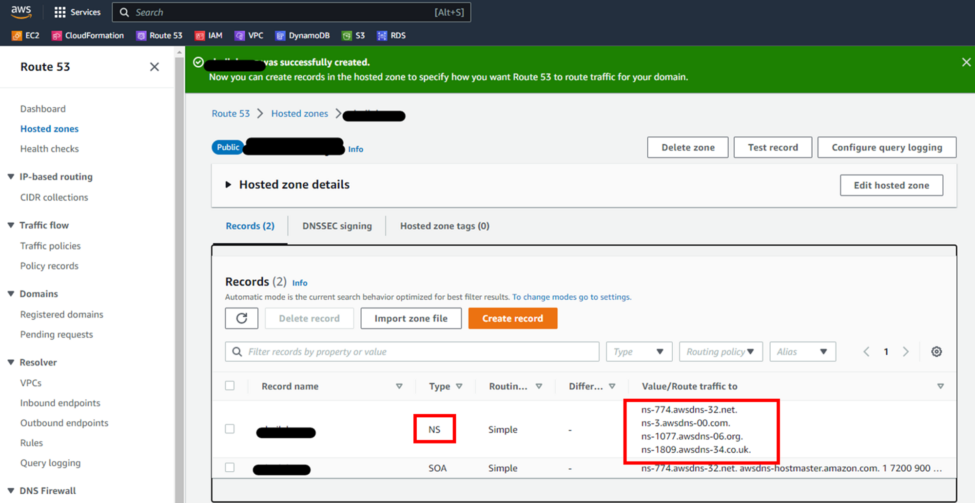 host zone이 만들어지면 nameserver가 생성됩니다. 이 nameserver를 가비아에 등록해야 aws route 53와 가비아가 연결됩니다.