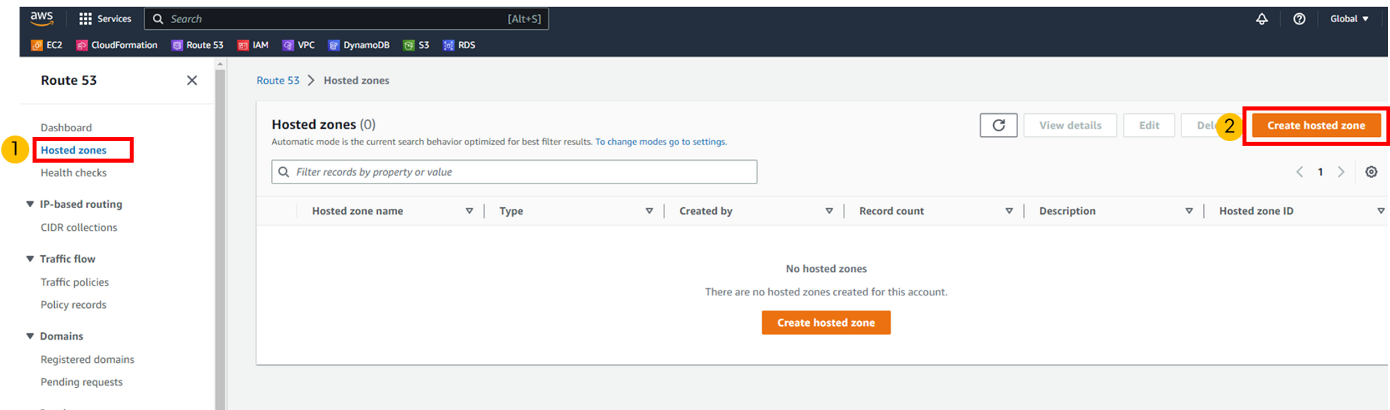 aws route 53메뉴에서 host zone을 만듭니다.