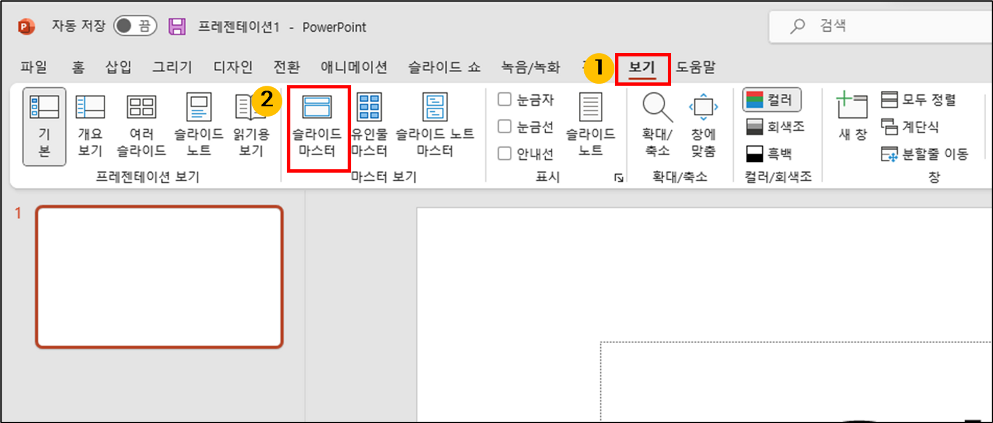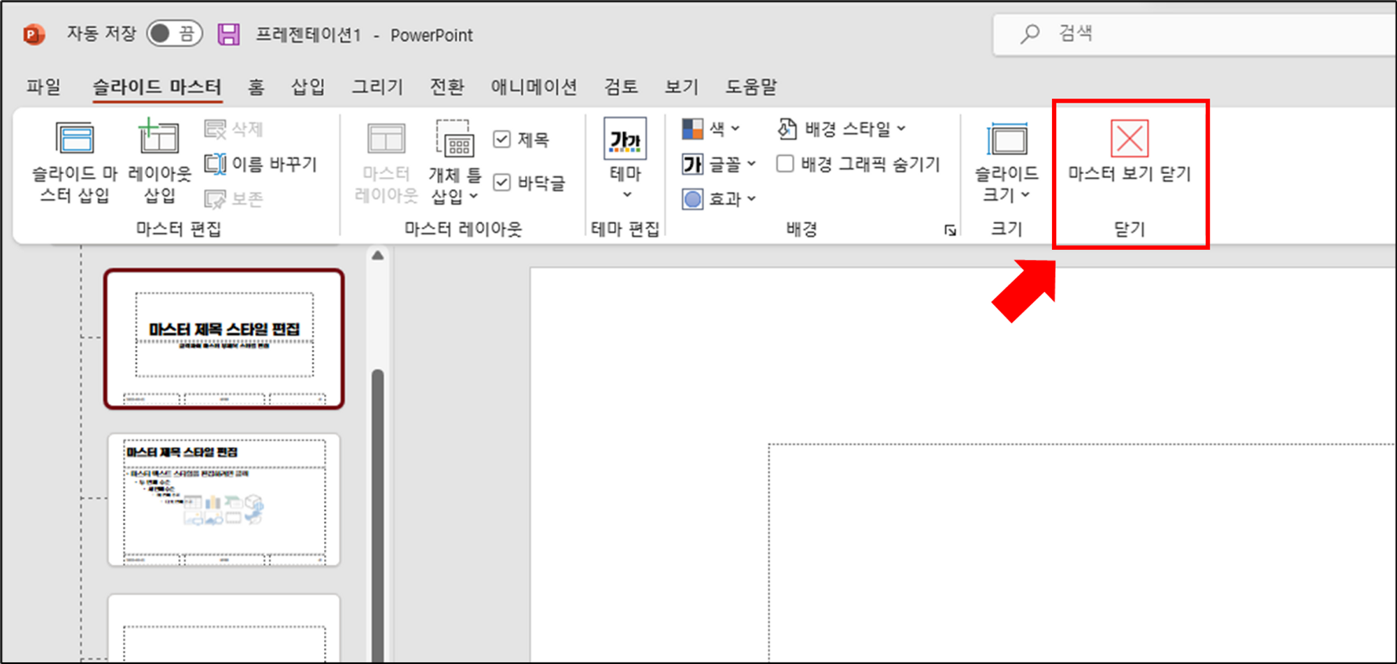 ppt파일을 새로 만든 다음 슬라이드 마스터를 엽니다.