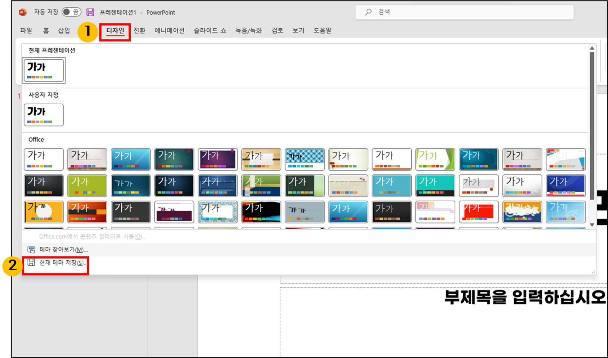지금까지 설정한 내용을 테마로 저장합니다.