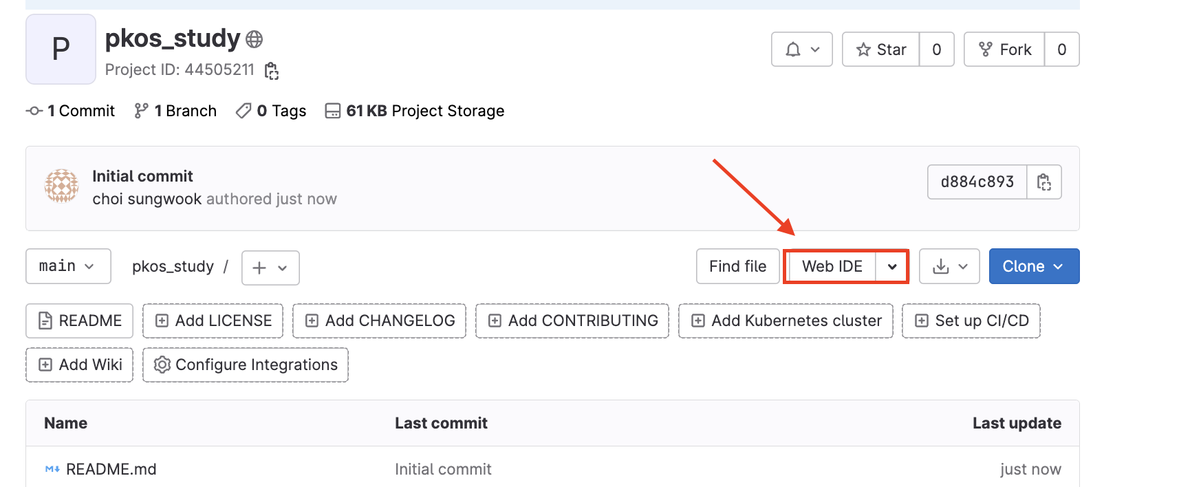 gitlab도 WEB IDE를 누르면 code-server가 실행됩니다.