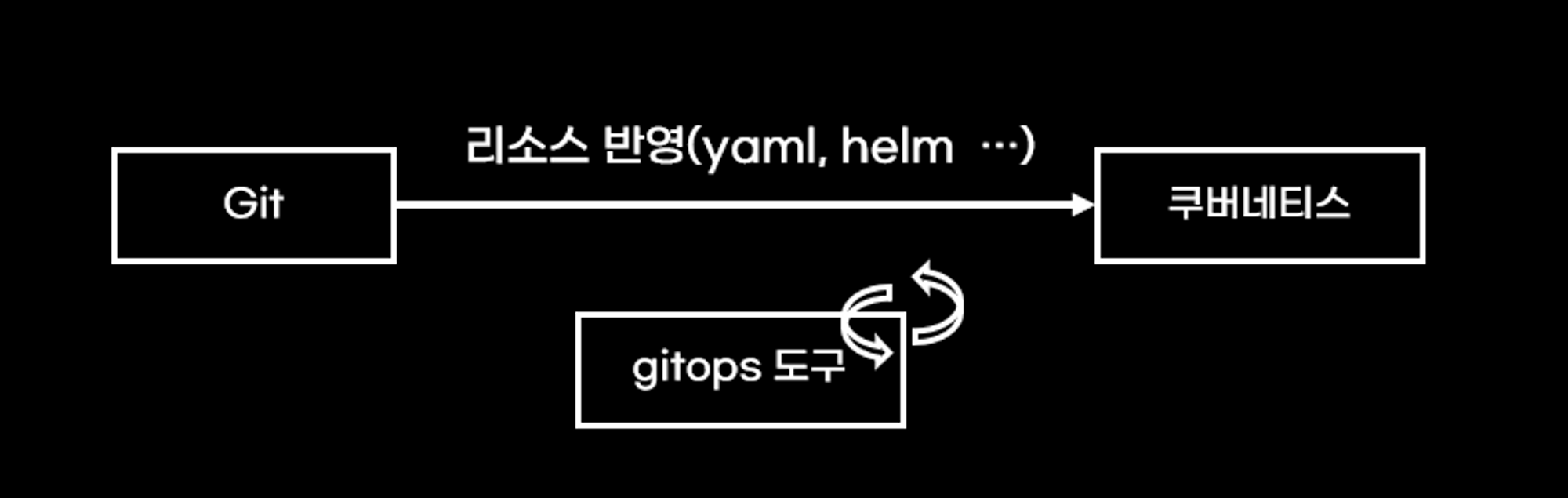 쿠버네티스 gitops로 동작하는 환경을 gitops 시스템이라고 불러 볼게요. gitops시스템은 최소 4가지 컴퍼넌트가 필요합니다.