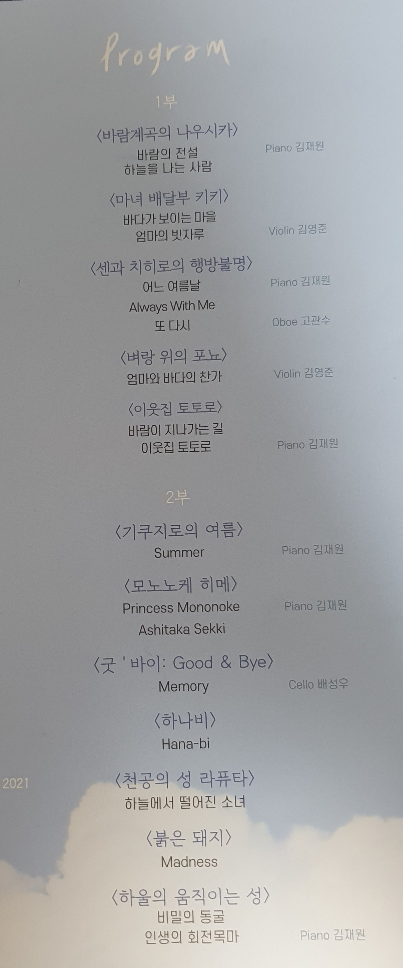 저는 마녀배달부 키키 ost(라이브 영상: https://youtu.be/MAMK8S4a8iM)를 보고 싶어서 갔습니다.