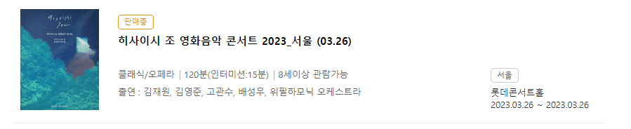 23.3.26(일) 히사이시조 영화음악 콘서트를 보러 갔습니다. 너무너무 재밌었습니다.