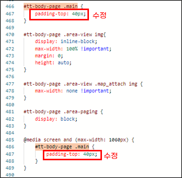 "#tt-body-page .main"필드 값을 40px로 수정합니다.