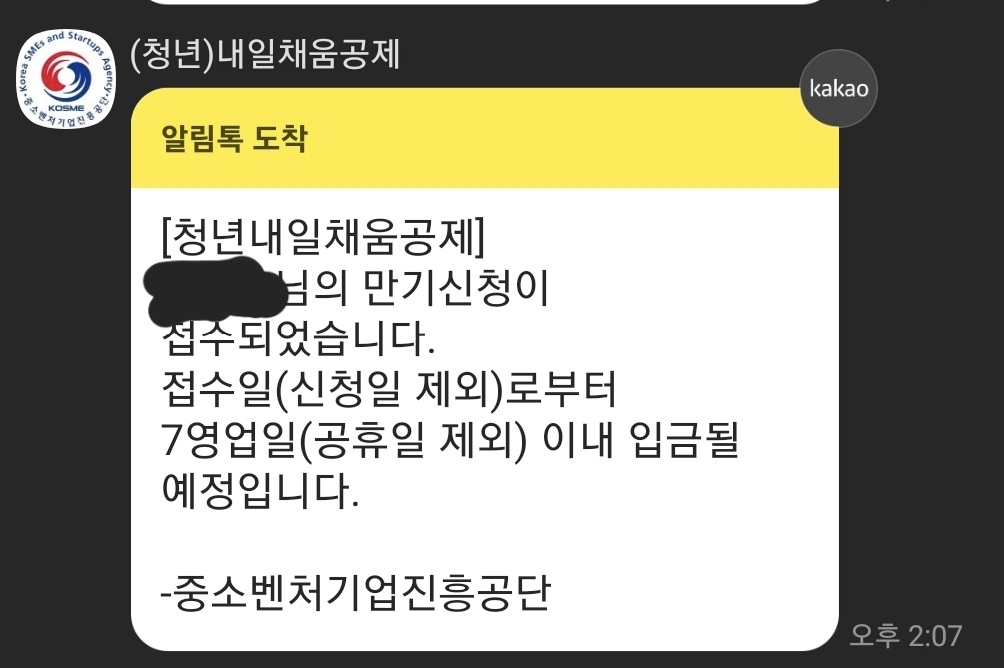 청년내일채움공제 2년 납기가 완료되어 만기금을 신청했습니다!