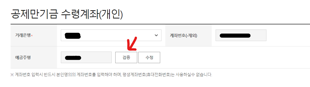 4. 신청서는 매우 간단합니다. 금액확인과 계좌번호 입력만 있습니다. 검증버튼을 클릭하면 입력한 은행 계좌번호를 검증합니다.
