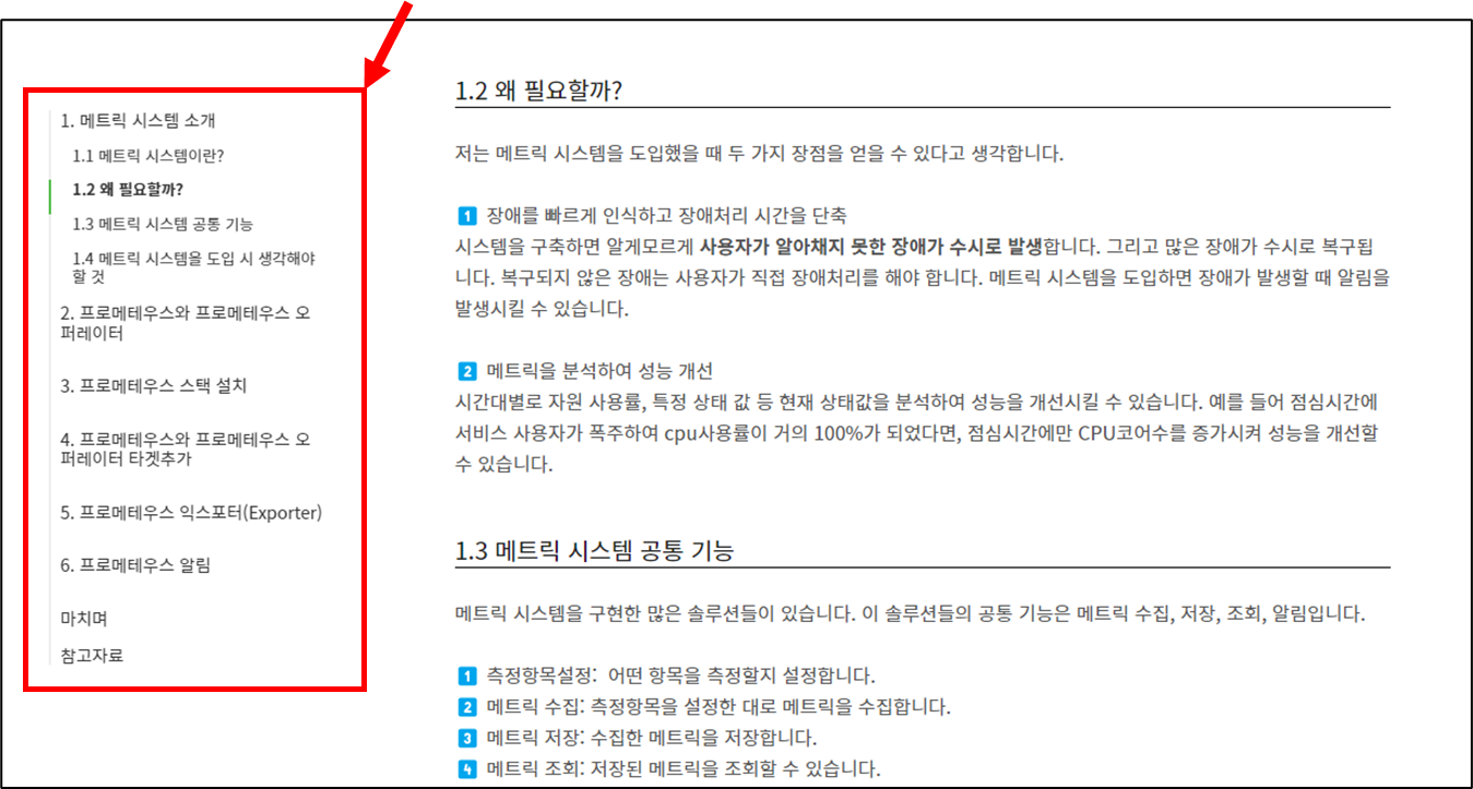 목차는 "제목"스타일로 작성한 글을 모아놓은 기능입니다.