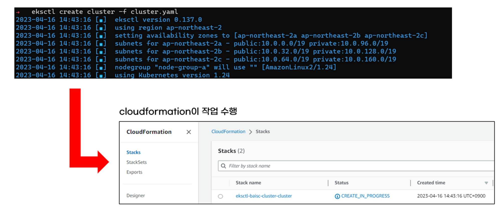 eksctl은 cloudformation으로 동작합니다.