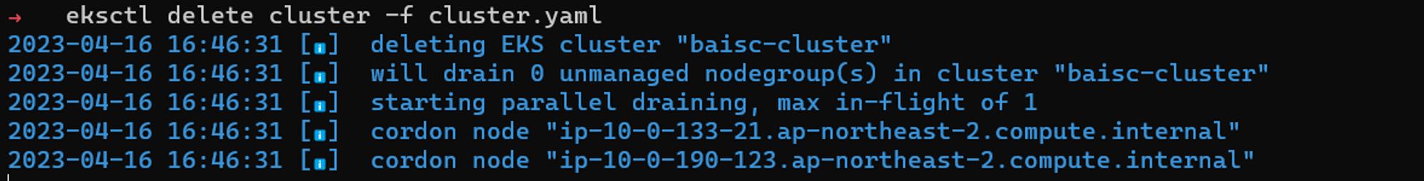 eksctl delete cluster -f cluster.yaml