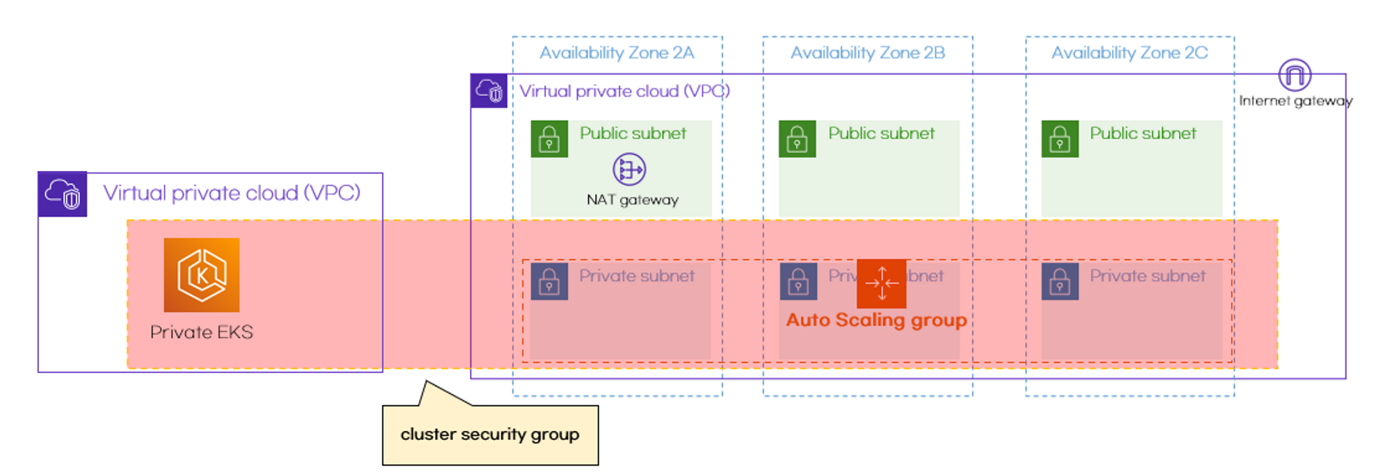 클러스터에 전체에 적용되야하므로, cluster security group은 managed worker node의 security group에 사용됩니다.