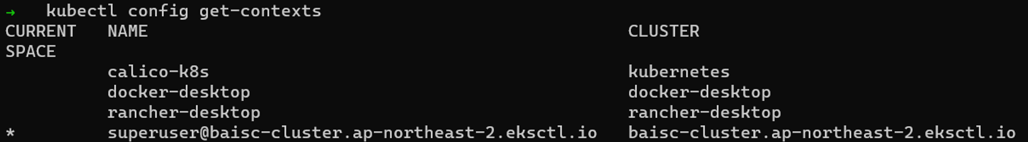 EKS가 설치되면 kubectl명령어를 사용할 수 있습니다. kubecontext는 자동으로 추가됩니다.