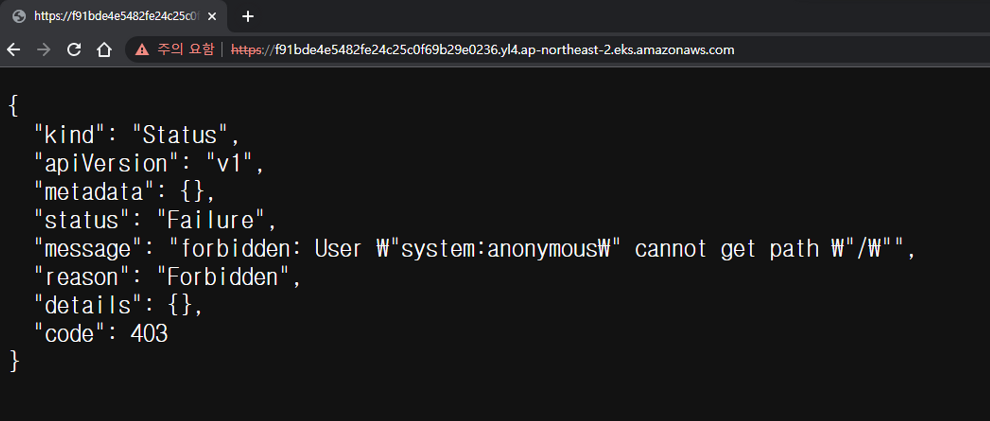 웹 브라우저로 API서버주소로 접근하면 API서버 응답을 볼 수있습니다.