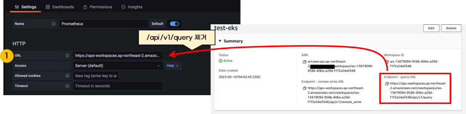 AMP query endpoint 주소를 HTTP url에 입력합니다. endpoint주소에서 “/api/v1/query”는 제거해야 합니다.