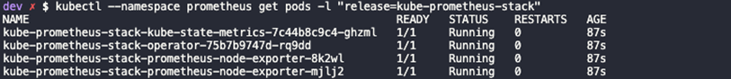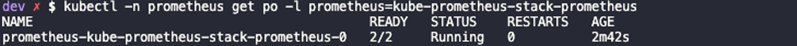 kubectl -n prometheus get po -l prometheus=kube-prometheus-stack-prometheus