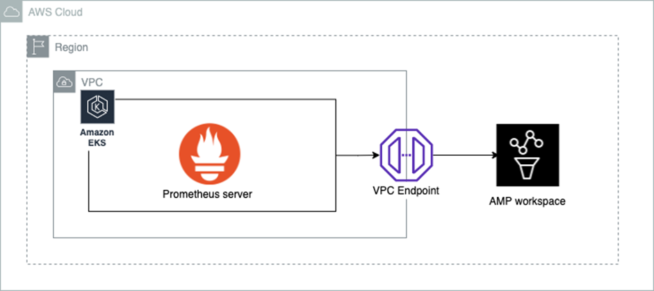 원격쓰기로 메트릭을 전송할 때 외부 네트워크를 사용합니다. 외부 네트워크를 사용하고 싶지 않으면 VPC endpoint를 생성해야 합니다.