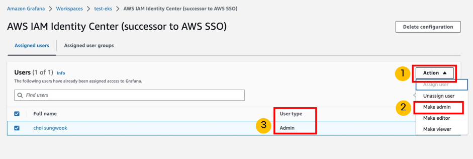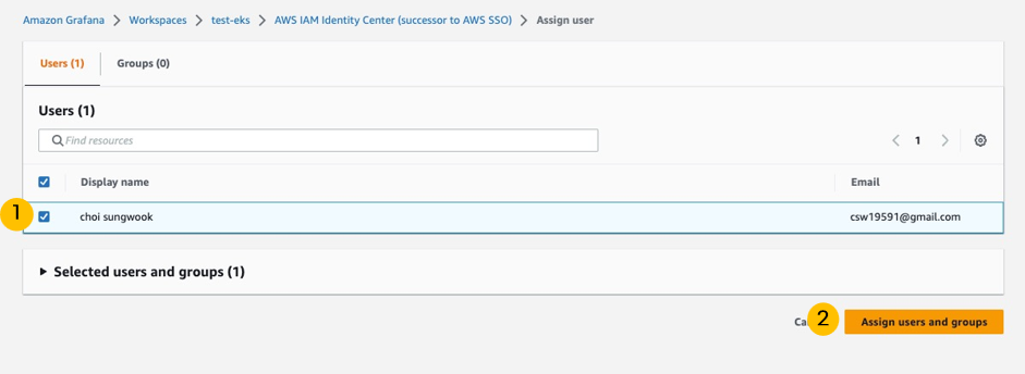 AWS SSO계정을 AMG 계정으로 등록합니다.