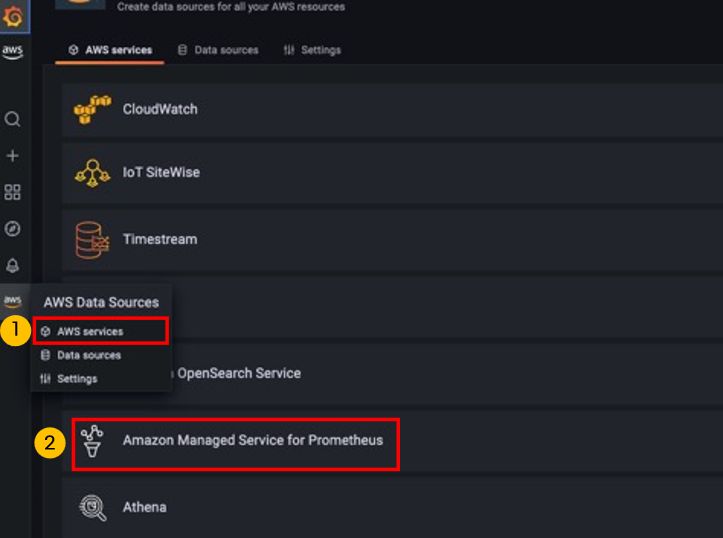 AMP를 AMG에 연결하면 AMP메트릭 대시보드를 만들 수 있습니다. AWS data source방법으로 AMP를 연결할 수 있습니다.