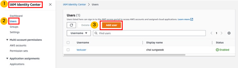 만약 SSO계정이 안보이면 AWS SSO계정을 생성해야 합니다.