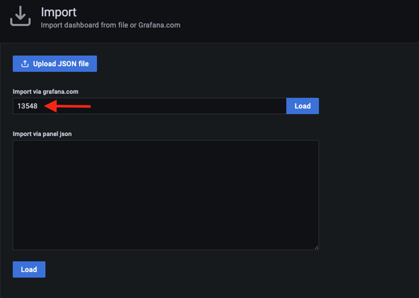 13548번호(https://grafana.com/grafana/dashboards/13548-kubernetes-compute-resources-node-groups/)를 갖는 대시보드를 불러옵니다.
