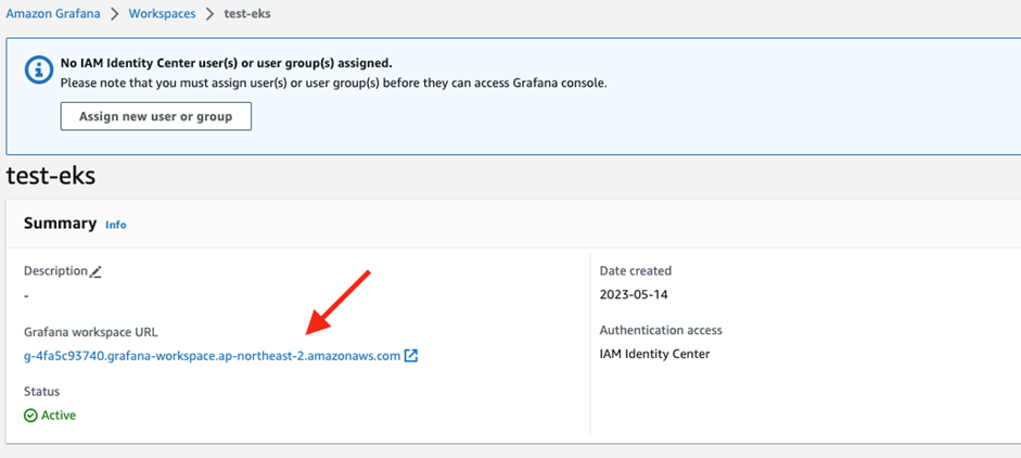 워크스페이스가 생성되면 AMG접속 주소가 생성됩니다.