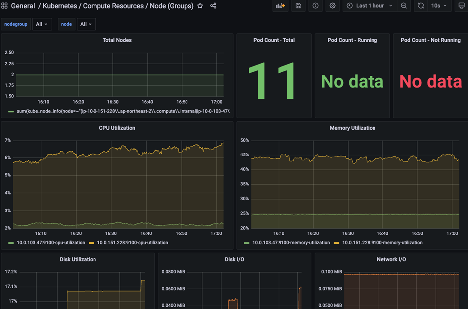 불러온 대시보드를 확인하면 EKS 워커노드 메트릭이 보입니다.