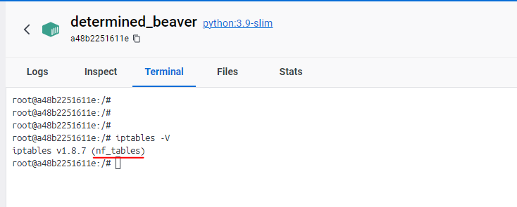 아래 예제는 python3.9컨테이너에서 iptables을 설치 했을 때, 설치되는 iptables 타입입니다.