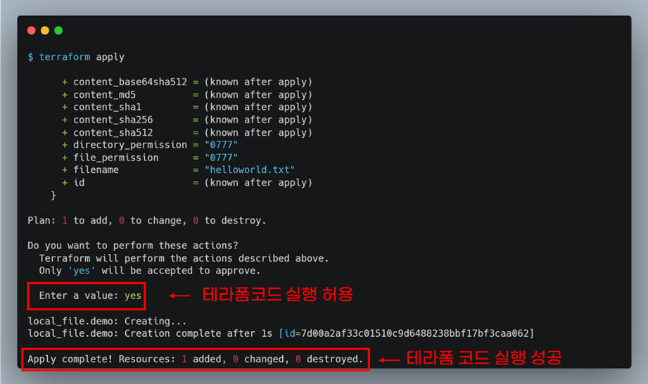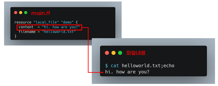 helloworld.txt파일 내용은 main.tf파일 설정내용과 같습니다.