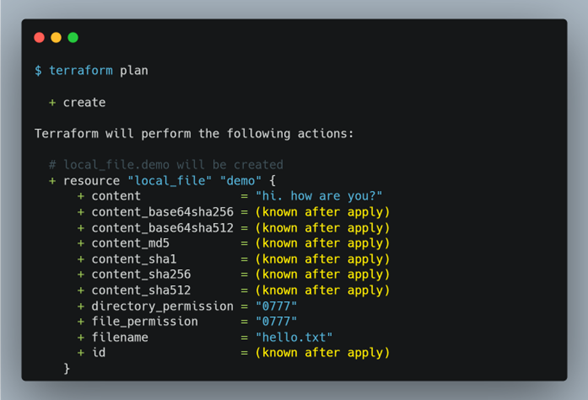 terraform plan으로 테라폼 코드를 미리 확인해보세요. (kown after apply)를 주목하세요. known after apply는 리소스 생성 후에 알 수 있는 값입니다.