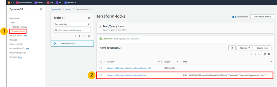 state locking을 하기 위해, 이전 실습 backend설정에 DynamoDB를 추가해야 합니다.