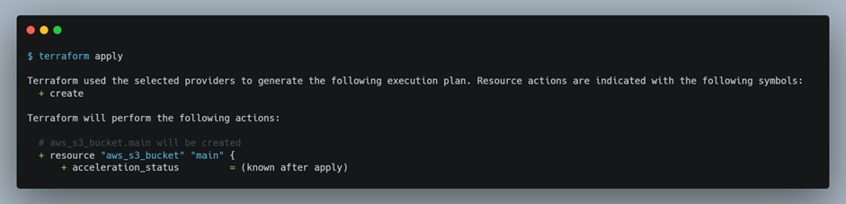 terraform apply명령어를 실행하면 어떤 결과가 나올까요? state가 없기 때문에 테라폼은 버킷을 생성하려고 합니다.