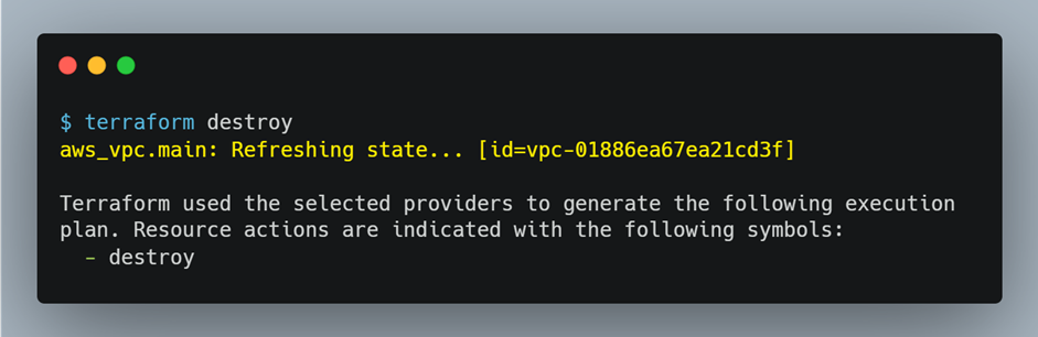 terraform refresh는 비교 과정 말고도 상태를 업데이트할 때 사용됩니다. 테라폼 실행 전에 refresh가 실행되면 비교를 하고, 테라폼 실행 후에 refresh가 실행되면 state를 업데이트합니다. 아래 예제는 terraform destroy를 실행하기 전 state와 대상을 비교합니다.
