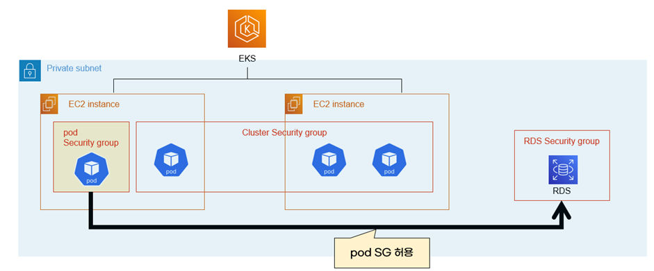 RDS에 접근하는 pod가 있다면, 해당 pod가 사용하는 SG에만 규칙을 추가하면 됩니다.
