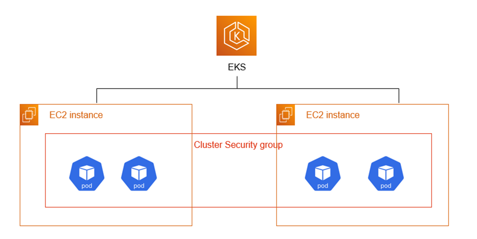 모든 EKS 노드가 cluster SG를 사용하므로 모든 pod도 cluster SG를 사용합니다. pod는 EKS노드 위에 실행되기 때문에 EKS노드가 사용하는 cluster SG를 사용합니다.