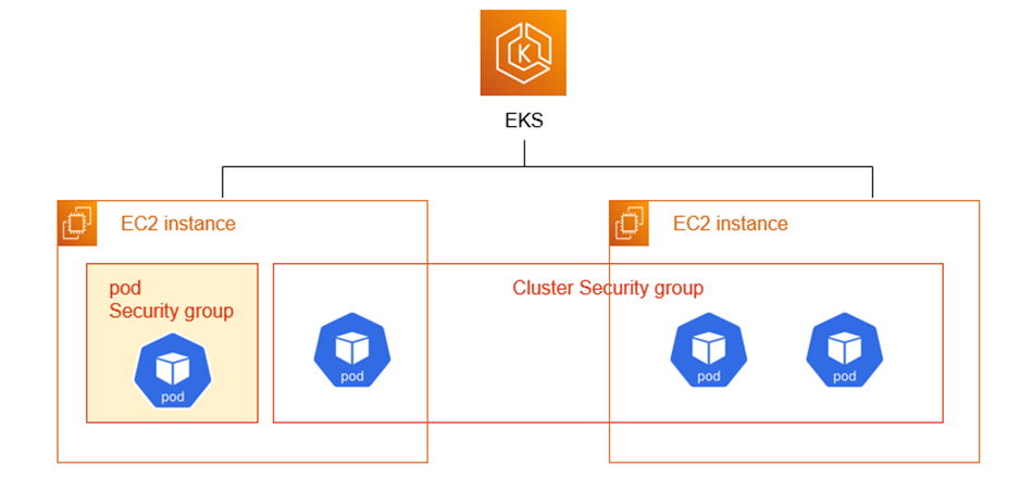 EKS관점에서 SG for pod를 바라보면 아래 그림과 같습니다. pod만 별도로 SG를 갖는 구조입니다.