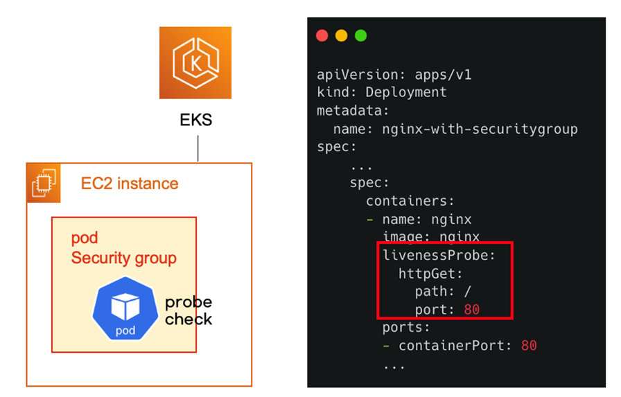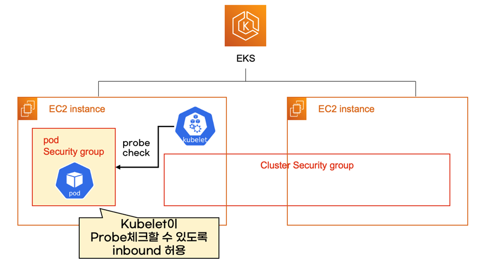security group for pod 문서에서도 probe사용시 주의사항을 가이드합니다.