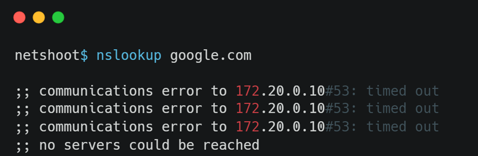 netshoot pod에서 google서버로 nslookup을 하면 응답을 받지 못합니다.