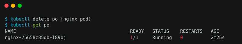 nginx pod를 삭제하고 상태를 확인해보지만 여전히 pod가 비정상정입니다. nginx pod가 probe를 실패하여 계속 재시작되고 있습니다.