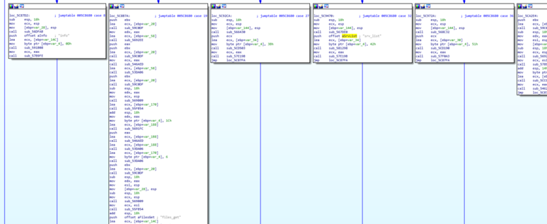 문자열을 참조하는 곳으로 이동하면 공격자에게 명령을 받아 실행하는 것으로 추측된 곳이 발견됩니다.