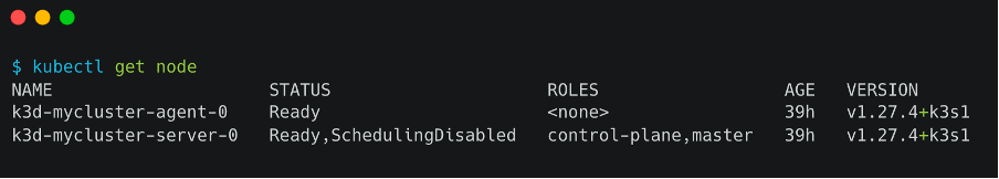k3d cluster create mycluster --agents 1 --agents-memory 1G