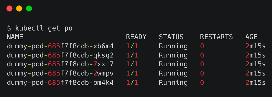 더미 pod가 노드에 잘 스케쥴링 되었는지 확인합니다.