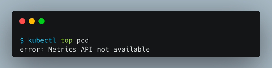 metrics server가 없기 때문에 kubectl top pod명령어는 에러가 발생합니다.