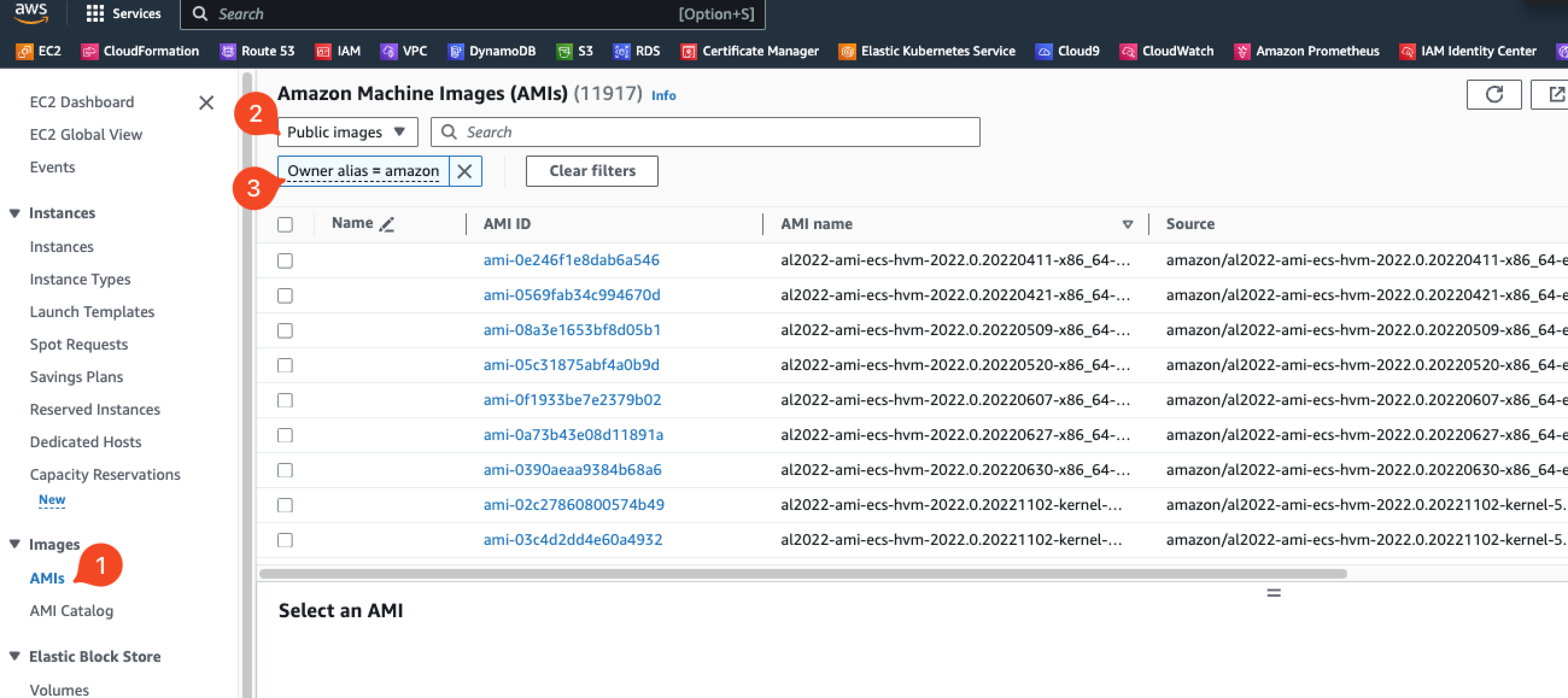 AWS CLI로도 AMI를 찾을 수 있습니다. describe-images, ssm get-parameters-by-path 등으로 찾습니다.