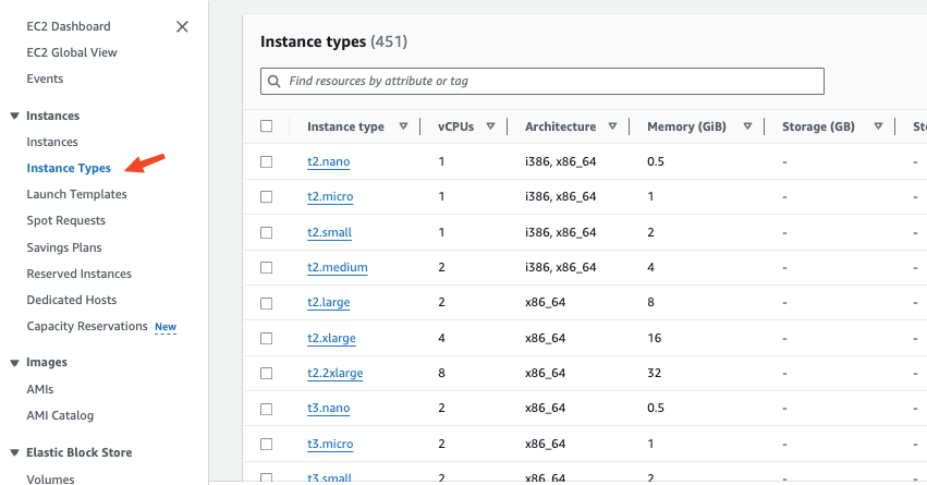 웹 브라우저에서 AWS EC2인스턴스 타입을 검색하려면 AWS 홈페이지나 EC2 대시보드(로그인 필요)를 사용합니다.