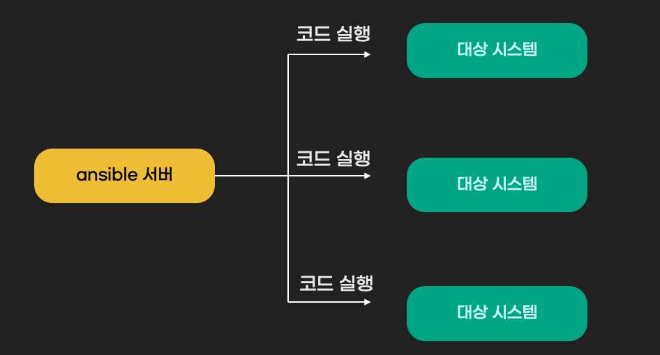 Ansible은 여러 시스템에 코드를 동일하게 실행하는 도구입니다. 시스템 상태 체크, 시스템 구축 등 여러 시스템에 동일한 작업을 할 때 사용합니다.