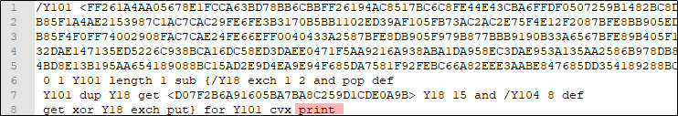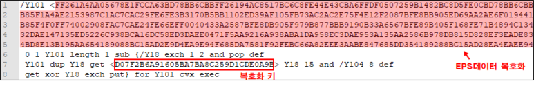 포스트스크립트는 실행 중에 XOR연산으로 페이로드를 복호화 합니다. 복호화키는 바이트배열입니다.