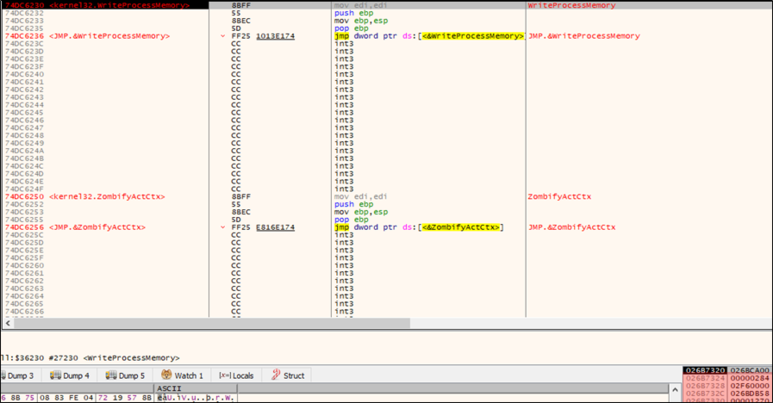 [그림 1]에서 분석한 것처럼 쉘코드는 explorer.exe에 쉘코드를 인젝션합니다. API리졸빙 로그를 통해 프로세스인젝션 함수를 알았으므로 해당 함수에 브레이크포인트를 설정해서 분석해봅시다.